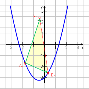 Gegeben ist die Parabel p: y = x2 + x – 3 Die Punkte An und Bn liegen auf der Parabel p, wobei die Abszisse der Punkte Bn um 2 größer ist als die Abszisse x der Punkte An. Die Punkte Cn ergeben sich aus An über