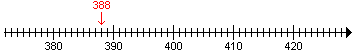Ein Beispiel: Die Zahl 388. Zeichnet man einen Zahlenstrahl für diese Zahl, so merkt man gleich: wir befinden uns in der Gegend um 400. Dann wird klar: Sie ist kleiner als 400, liegt also auf dem Strahl links davon. Und schließlich erkennt man, dass sie auch noch vor 390 liegt: genau um zwei Zähler.