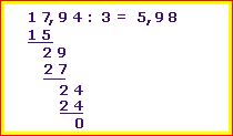 Beispiel: 17,94 : 3 = ???