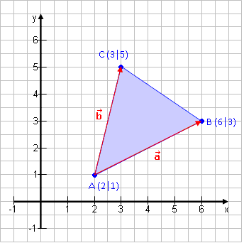 Die Sache ist zwar nicht geschenkt, aber auch nicht wahnsinnig schwierig. Du brauchst einfach ein wenig Übung! Die drei Punkte A(2|1), B(6|3) und C(3|5) bilden ein Dreieck. Berechne seinen Flächeninhalt. Zunächst ermitteln wir die beiden Vektoren: