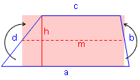 Ein Trapez besitze die Grundlinien a = 16 cm und c = 10 cm sowie die Höhe h = 4 cm. Berechne seinen Flächeninhalt. A =