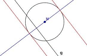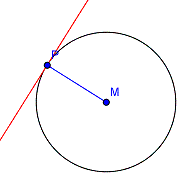 Man muss den Thaleskreis über der Strecke [MP] konstruieren. Da wo der Thaleskreis den ursprünglichen Kreis schneidet, liegen die Berührpunkte für die Tangenten.