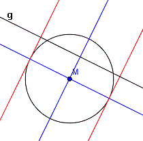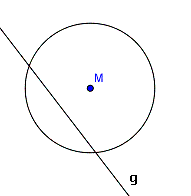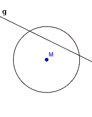 Eine Tangente berührt einen Kreis in einem Punkt, eine Passante läuft an ihm vorbei, ohne ihn zu schneiden und eine Sekante schneidet ihn in zwei Punkten.