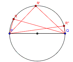 Jeder Punkt auf dem Thaleskreis bildet einen rechten Winkel zu der Strecke, über der der Thaleskreis geschlagen wird.