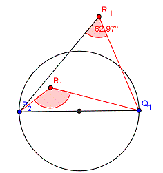 Überlege selbst: Was kann man über den Winkel aussagen, unter dem ein Punkt C die Strecke [AB] sieht, wenn er außerhalb des Thaleskreises über [AB] liegt? |