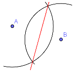 Die Mittelsenkrechte selbst ergibt sich, wenn die Punkte genau den gleichen Abstand von A und B haben sollen.