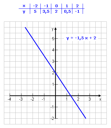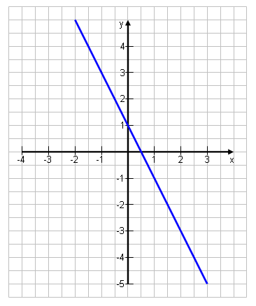 Sie geht bei 1 durch die y-Achse und fällt mit der Steigung -2.