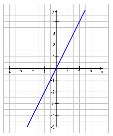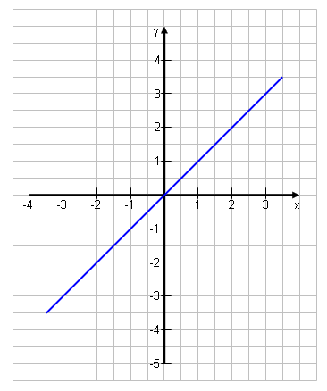 Sie geht bei 0 durch die y-Achse und steigt mit der Steigung 1. (Erste Winkelhalbierende)