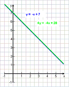 Es gibt auch Gleichungssysteme, die nicht keine, nicht eine sondern mehrere oder sogar unendlich viele Lösungen haben. Grafisch gesprochen passiert das immer dann, wenn beide Geraden aufeinander liegen. Oder, anders gesagt, wenn es sich bei beiden Geraden um die gleiche Gerade handelt. Beispiel: Bauer Huber hat dieses Mal Schafe und Ziegen. Er zählt 7 Köpfe und 28 Füße: x + y = 7 ˄ 4x + 4y = 28 | : 4 Die zweite Gleichung hilft uns nicht weiter, weil Ziegen genau so viele Füße haben wie Schafe. Teilt man die Gleichung durch 4, kommt eh wieder die erste heraus: x + y = 7 ˄ x + y = 7 Die Aussage stimmt also für 7 Schafe und 0 Ziegen. Oder für 6 Schafe und 1 Ziege für 5 Schafe und 2 Ziegen usw. |